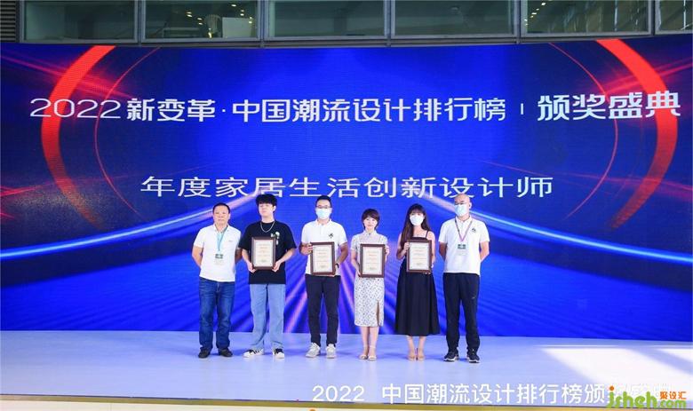接下來就是激動人心的高光時刻。首先頒發(fā)的是2022中國潮流設(shè)計排行榜“年度領(lǐng)軍人物”和“年度家居設(shè)計新銳設(shè)計師(設(shè)計機(jī)構(gòu))”兩個獎項,室內(nèi)設(shè)計大賽評委與特邀嘉賓相繼上臺為獲獎設(shè)計師頒獎,并且合影留念。