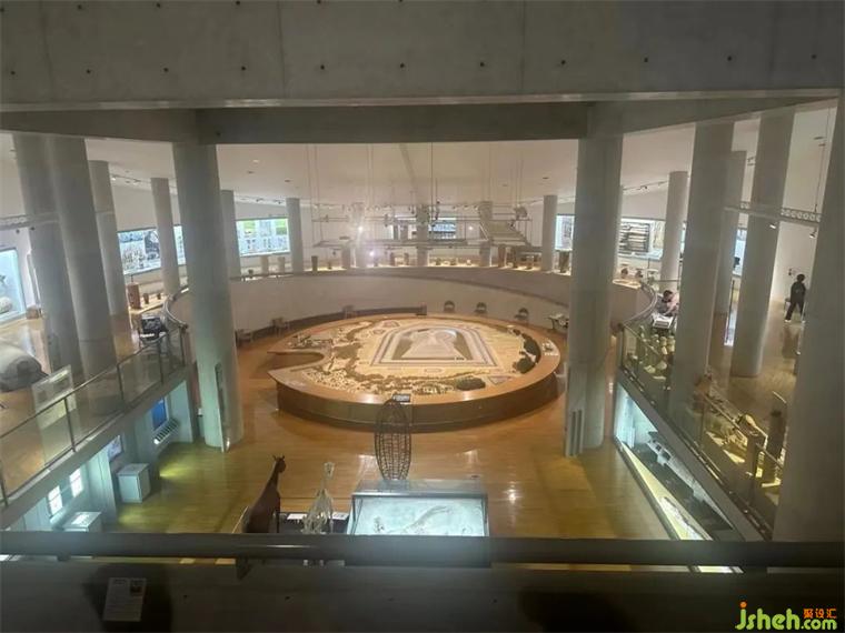 其構(gòu)思是一座小山丘,通過它可以觀覽四周吉蔡文物出土區(qū)域。限預(yù)則形成了一個(gè)碩大無朋的合階式廣場(chǎng),成功的創(chuàng)造出一個(gè)人與自然和人與人交流對(duì)話的場(chǎng)所。圍繞博物館四周布置了敢步小道,很好的組織了戶外活動(dòng)。兩組坡道深深明入并穿過廣場(chǎng)上的大臺(tái)階。
