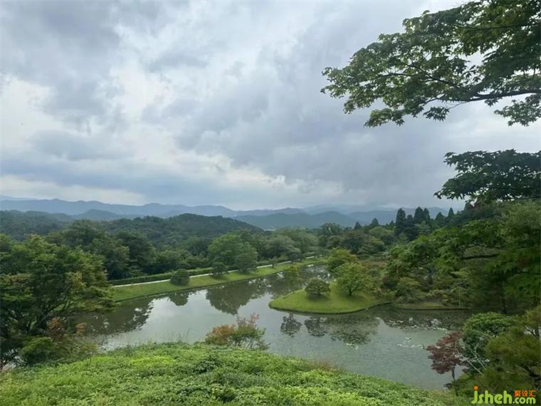 綜觀修學(xué)院離宮,遠離市塵卻可遙望街市,離而不隔,若即若離。本為山地,曲水瀑布最宜,卻強為廣大水池,堆土島構(gòu)橋梁,工程浩大。但堤下以植籬掩蓋,堤上寬堤如浜,顯得親切自然。最妙處為借景,在鄰云亭、千歲橋、西浜各處都可借到山下、市區(qū)和遠山的景觀。