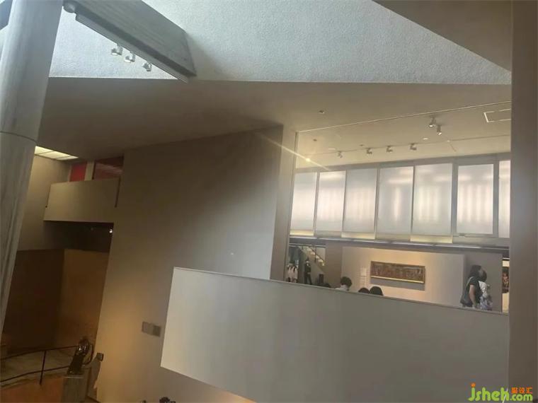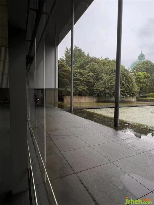 法隆寺寶物館位于東京上野公園內(nèi),由建筑師谷口吉生設(shè)計(jì)。建筑主要由三個體量連接而成,玻璃大廳的幕墻和采用鐵骨架支撐、細(xì)長的豎向窗格是對傳統(tǒng)建筑中拉窗元素的現(xiàn)代化表達(dá)。建筑師在這里運(yùn)用極其通透的建筑外表皮和扎實(shí)的建筑內(nèi)核,創(chuàng)造出豐富的室內(nèi)外空間。