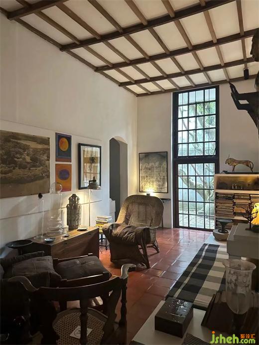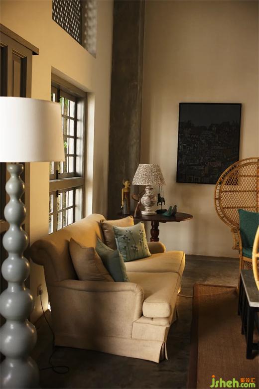 2.低成本建材運(yùn)用,所有巴瓦的作品采用的材料都極其普通、便宜,室內(nèi)幾乎沒有吊頂,墻面四白落地,地面是陶土磚、水泥地面或者木地板,沒有踢腳線。照明基本采用自然光和間接照明。裝修上極少采用現(xiàn)代材料,空間呈現(xiàn)出簡(jiǎn)樸、自然的松弛感。