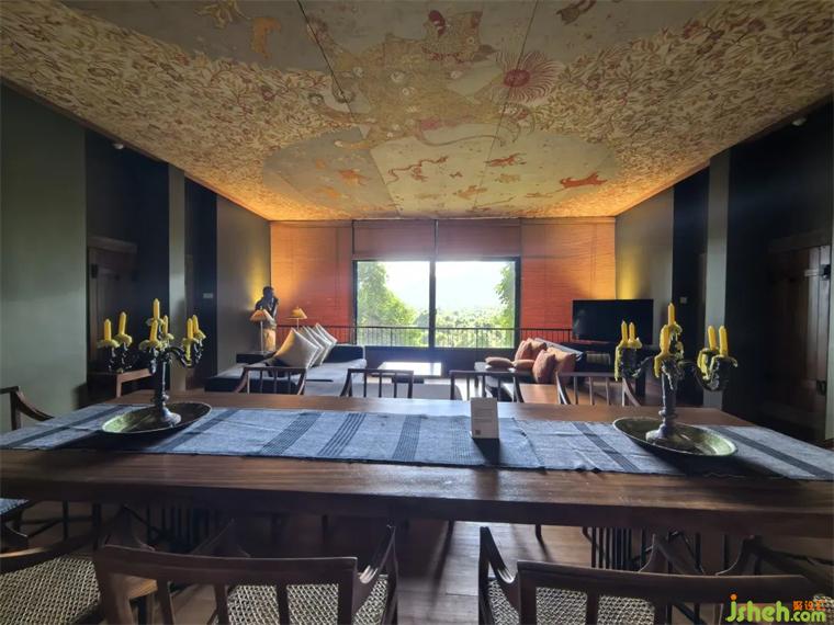 基本上他的作品里面都會有大量他自己設(shè)計的家具,以及他的藝術(shù)家朋友們的作品,具有地域性特色的木雕,以及用布印染的各種豐富多彩圖案的裝飾畫,這讓我站在面前簡直挪不開眼,吵著想要導(dǎo)游小哥帶我去買,哪里有賣,結(jié)果他說這是他朋友的作品,市面上肯定是沒得賣的,那我說復(fù)制品有嗎,他笑著也不知道該如何回答我,可能以前沒有人提出過這樣的要求。