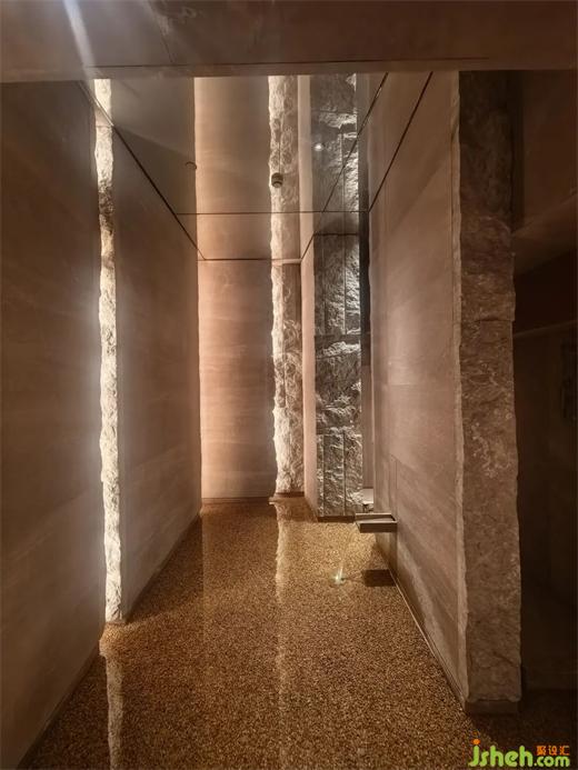 靜安區(qū)中興路699號(hào),又一上海頂級(jí)豪宅坐落于此,售樓部大廳恢弘大氣,富麗堂皇,金色的花束好似瀑布一般在樓梯間流淌。踏上自動(dòng)扶梯,我們來(lái)到了藝術(shù)畫廊一般的公共區(qū)。黑白交織的連廊設(shè)計(jì),高級(jí)神秘,一件件藝術(shù)品置于兩側(cè)的壁龕中,暖黃色的燈光為設(shè)計(jì)披上金色的光暈。這是萬(wàn)科傲舍打造的“一間美術(shù)館”會(huì)所,總共約2000平米,為業(yè)主帶來(lái)了藝術(shù)展覽、日咖夜酒、健身、社交、游泳、理療等多功能服務(wù)。每個(gè)空間,都代表上海生活方式的濃縮——文化與時(shí)尚,煙火氣與精致,活力與運(yùn)動(dòng)的交疊。