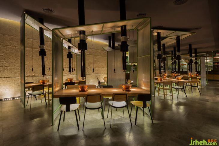 每一次進入餐廳,餐廳設(shè)計大多數(shù)人會選擇靠窗座位、卡座或者單獨隔離的座位,總之舒適和僻靜似乎成了選擇的宗旨。但是在這家餐廳,人們偏偏要坐在正中央,與鄰座“互相擁擠”,即使是硬邦邦的普通椅子甚至木樁子也不怕。