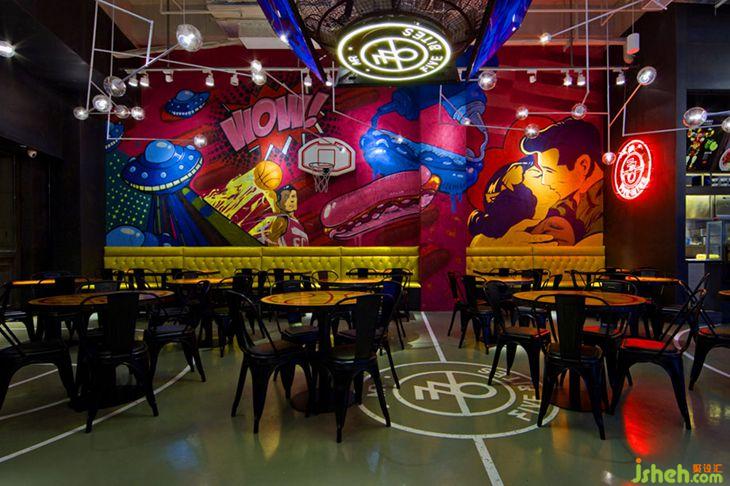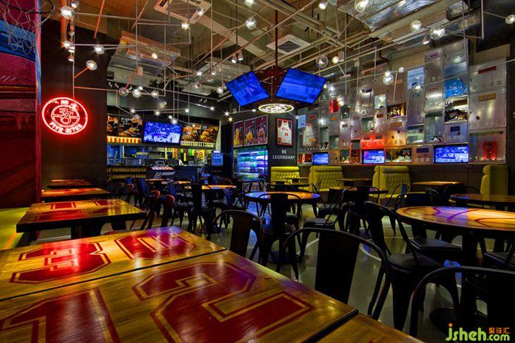 本項(xiàng)目是中國深圳市一間新開業(yè)的運(yùn)動吧,為顧客提供美式熱狗,沙律和啤酒等食品。深圳室內(nèi)裝修設(shè)計(jì)富有趣味性的裝飾以美國NBA球賽場拼貼街頭藝術(shù)作為主題重新演譯典型的美式運(yùn)動吧體驗(yàn)。