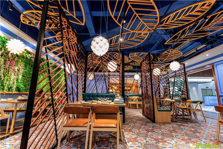 作品簡介:為凸顯新派粵菜餐廳的潮流感,設(shè)計(jì)師在該設(shè)計(jì)中以熱帶風(fēng)情為主題
