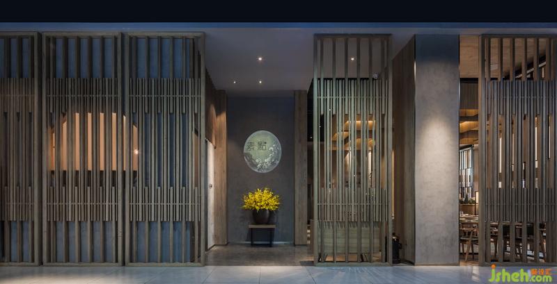 作品簡介:虛實是中式設(shè)計重視的又一個觀念,典型的中式空間講究“隔斷”,而這種隔斷,目的并不在于要把空間切斷,而是一個過渡、一個提醒、一個指示,常?!案舳粩唷薄TO(shè)計師在黟縣民間收集了老建筑拆除余留的格柵門板,清理修復(fù)但保持原有年代的色澤。用方通加以固定,形成屏風(fēng)式隔斷,既完成了就餐空間的私密需求又隔而不斷,使整體空間完整,通透還有很強的裝飾。