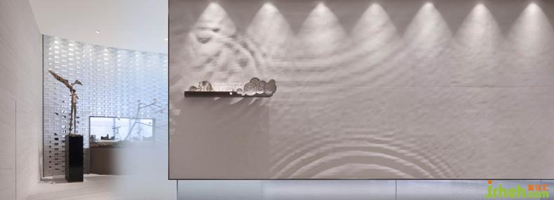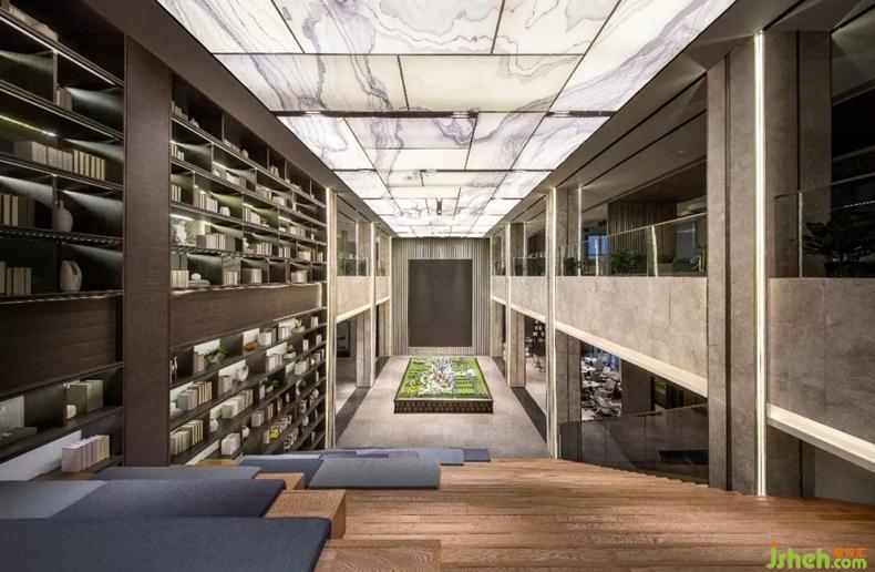 作品簡(jiǎn)介:暖褐色金屬門樓,創(chuàng)造禮儀感與品質(zhì)感的營(yíng)銷游覽動(dòng)線。簡(jiǎn)約大氣的冷灰色石材,流暢的水云紋理融入地面景觀空間,身處曲水流云的度假天境。入接待前廳,月洞形格柵屏風(fēng)運(yùn)用中式園林框景手法把院落景觀映入眼簾。精選紫山水大理石與鍛打山水紋的古銅接待臺(tái)完美契合,尊貴而高雅用現(xiàn)代手法展現(xiàn)禪意韻律。
