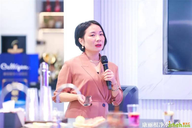 ▲聯(lián)合主辦方康麗根凈水深圳東莞地區(qū)負(fù)責(zé)人陳華珍女士品牌演說(shuō)