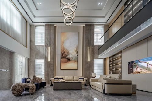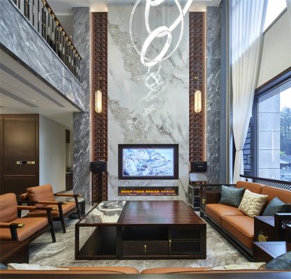 630㎡別墅裝飾,新中式+挑高客廳,