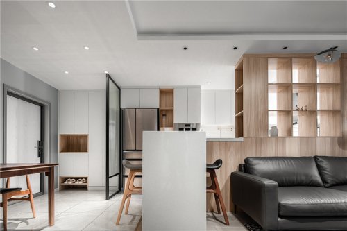 58㎡一居室裝修設(shè)計擁有超大廚房+超長玄關(guān),盡顯不一樣的現(xiàn)代輕奢風